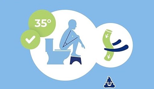 Coloque o banquinho em frente à sanita e coloque os pés nele ao sentar-se. Os joelhos devem estar ligeiramente mais altos do que as ancas. Esta posição facilita o processo e torna-o mais confortável.
